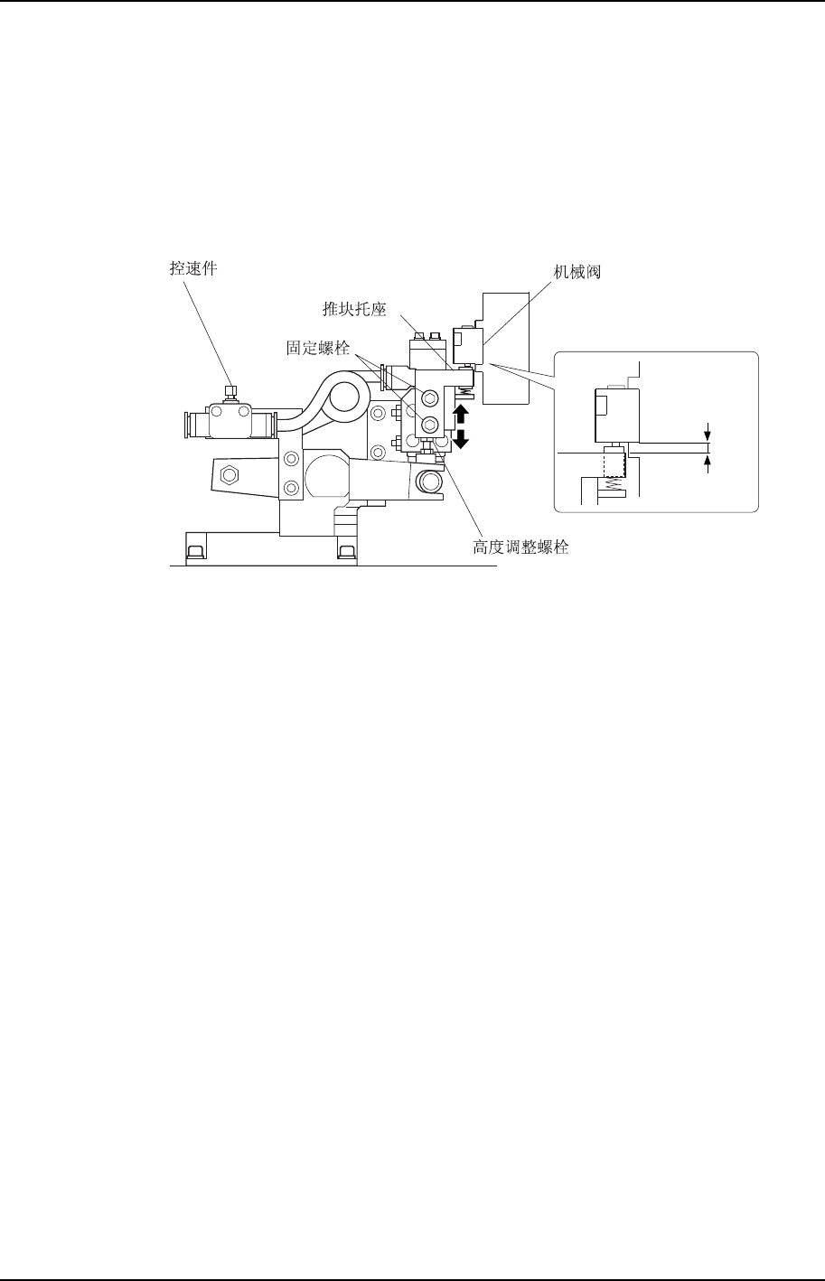拧松固定螺栓,调节高度调整螺栓,将机械阀下面与推块托座上面的间隙设置为