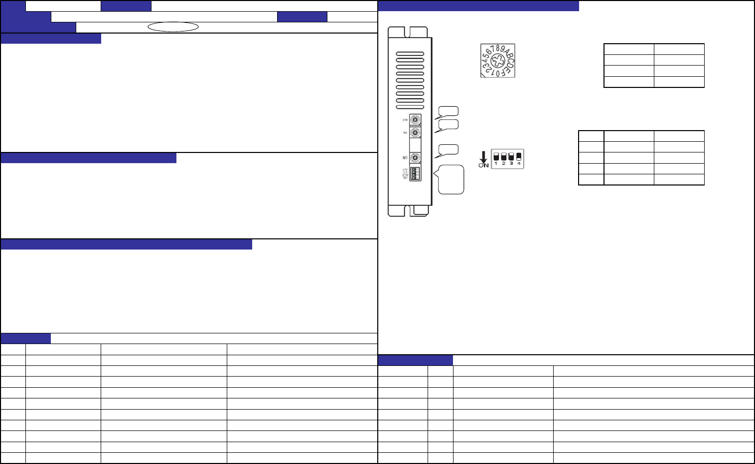旋转开关如下表设定。
