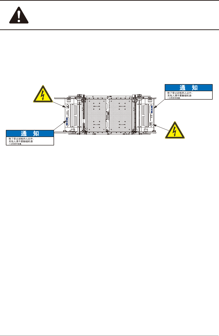 除了装置运行操作人员或受过训练的人以外,其他人请不要触碰机器。
