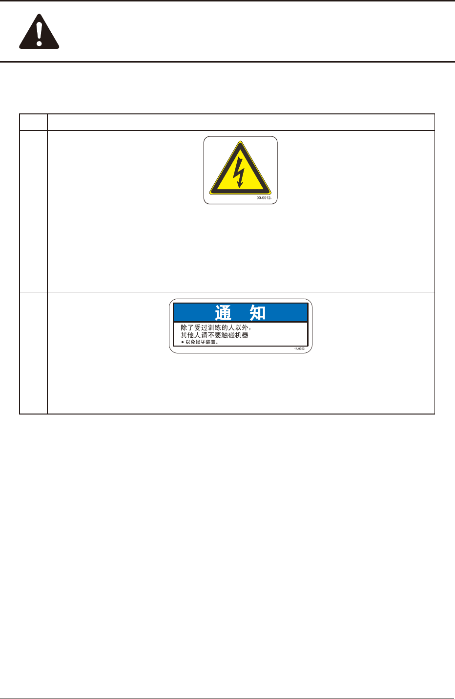 No. 警告标签及其说明
