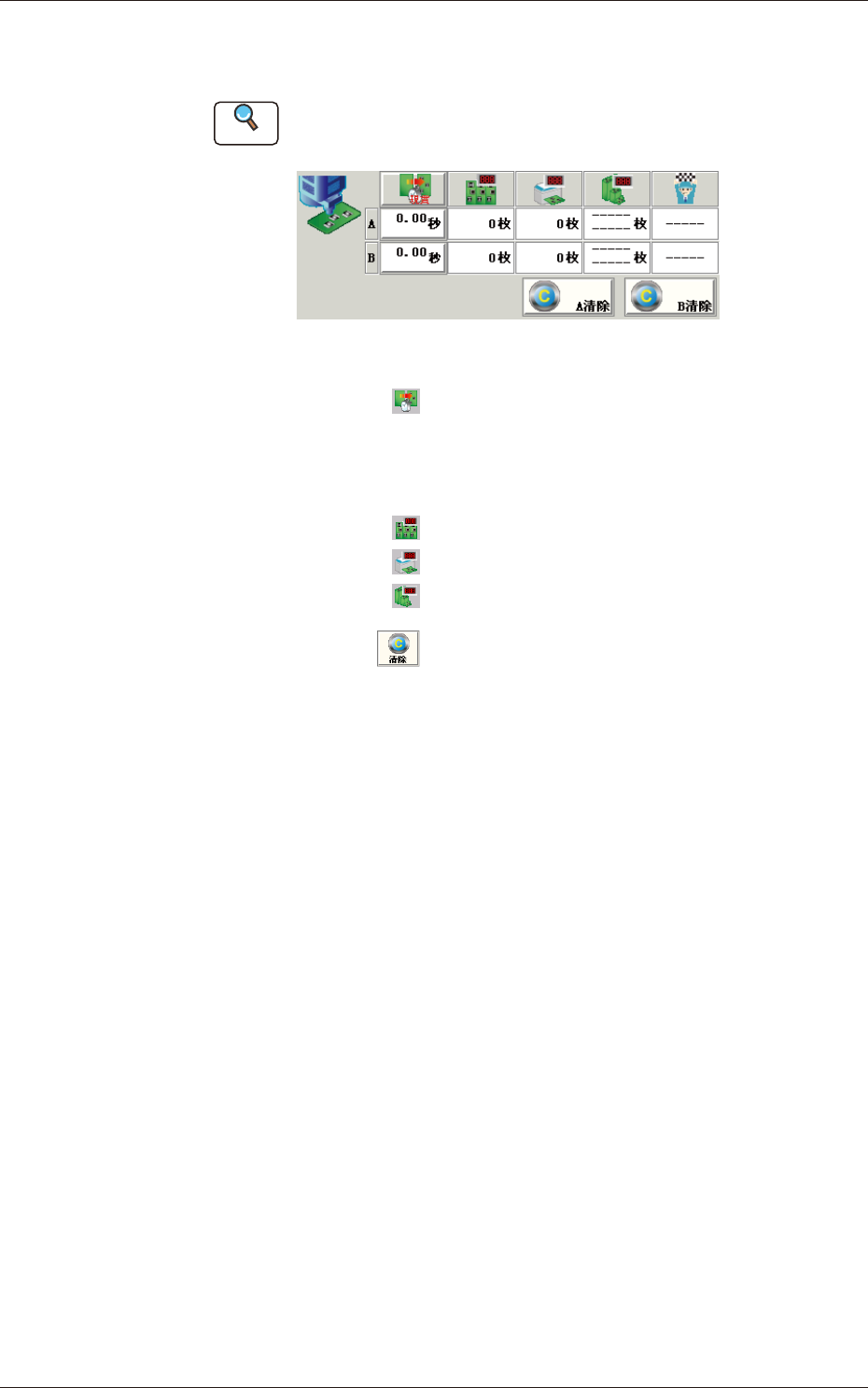 [清除]按钮 : 清除生产数量为 0[ 零 ]。停止。