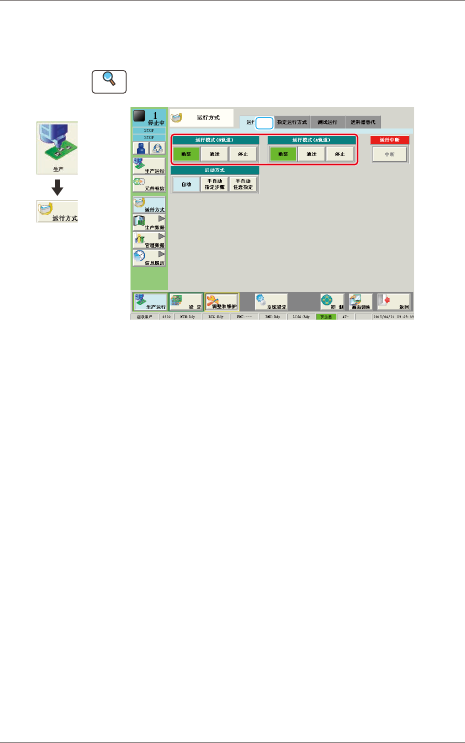 [贴装]按钮 :进行生产运行时选择此按钮。