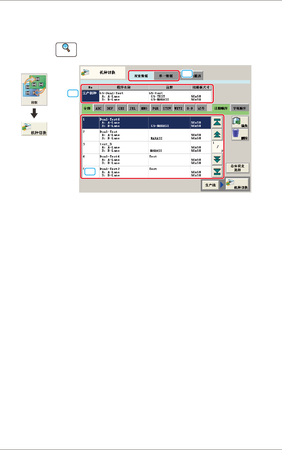 从双重数据中选择机种时,显示 A 通道、B 通道的各程序名称、注释、