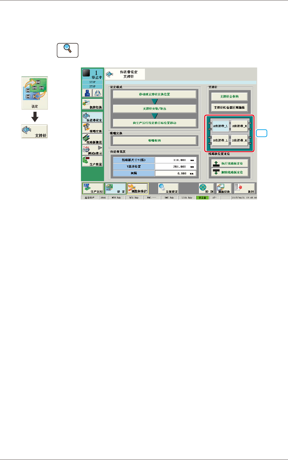 [B 传送带 _L] 按钮 :选择 B 通道侧线路板定位 L 部。