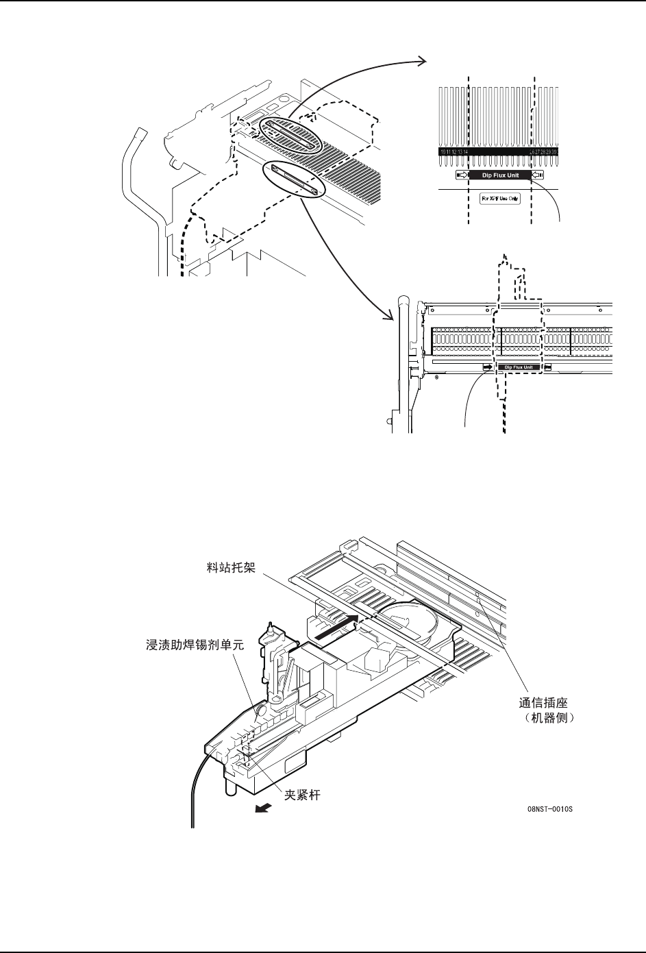 2. 拉住夹紧杆,将浸渍助焊剂单元向前方滑动,推入到使前端的插头完全插入料站托架侧