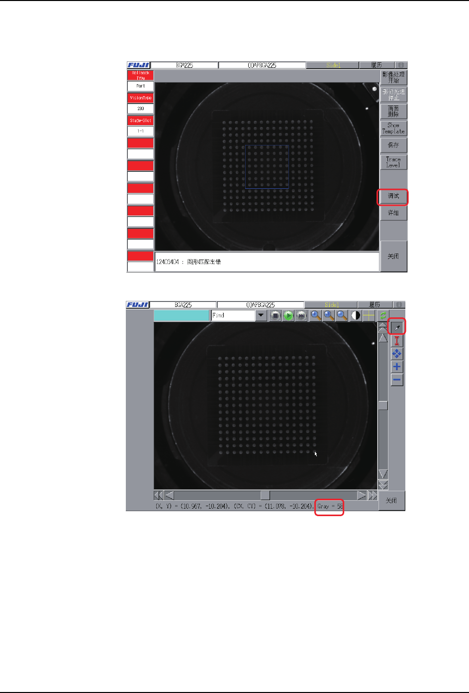用图形编辑器,按下 [ 虚拟画面 ] 按键,在相机影像上显示的锡球消失或者锡球缺损时会发