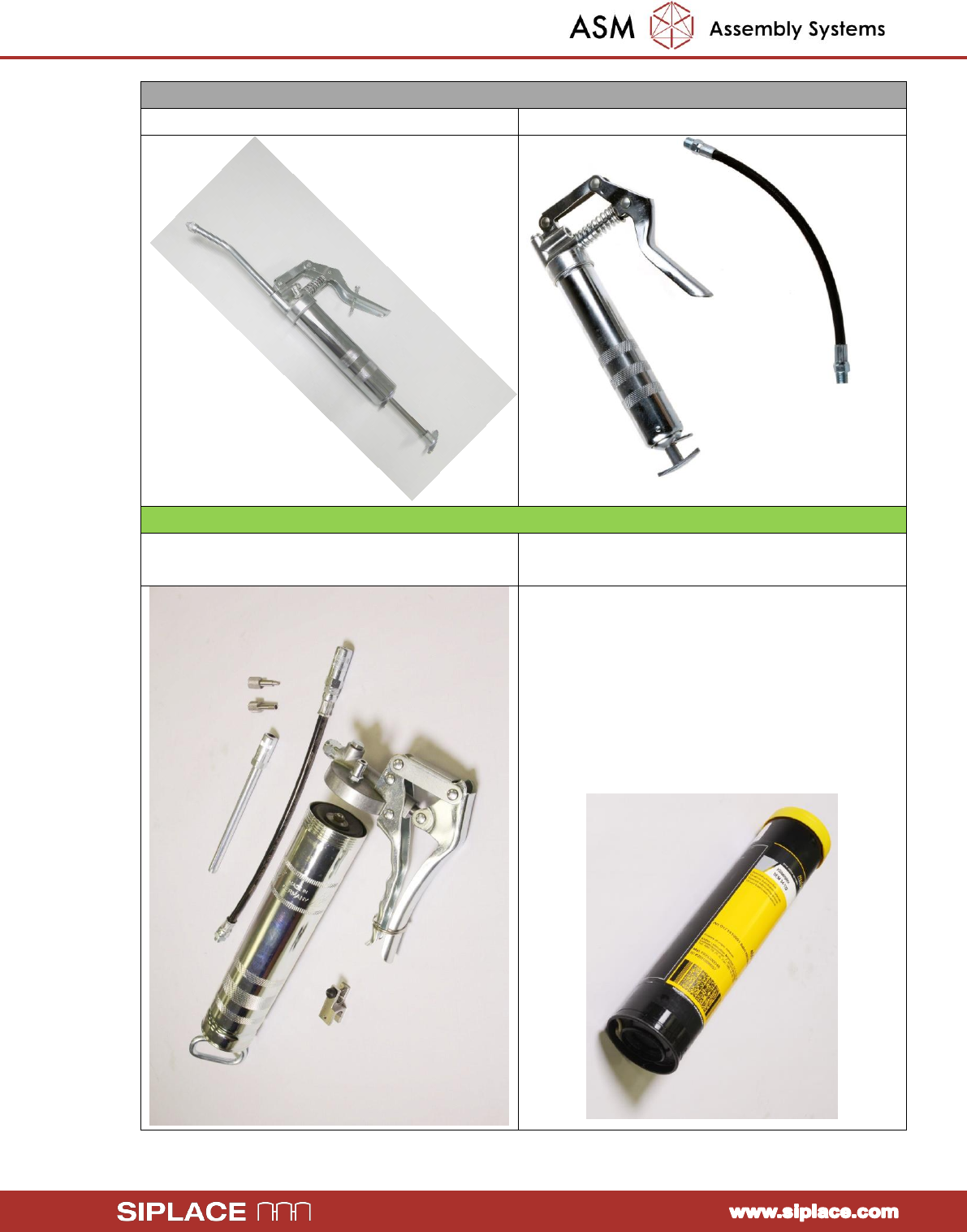ASM Assembly Sy stems GmbH & Co KG Subject to chang e without noti ce 7/27/2015 Rupert-M ayer-Strasse 44 81379 Mun ich, Germany TI2015-07E03.doc Page 3 - 5 2. Order numbers for grease gun and accessories Order the fo…