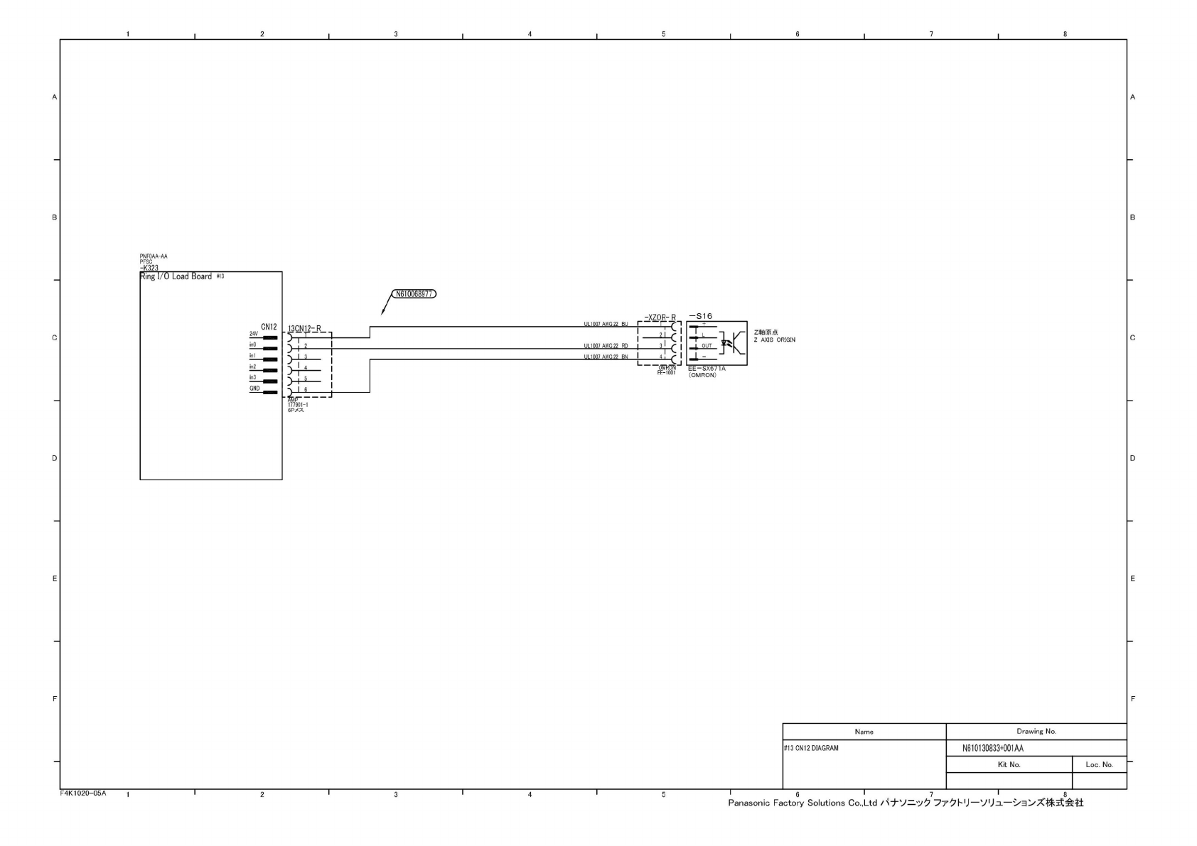 1 2 3 4 7 8 A A B B D D E E F F F4K1020-05A 2 4 7 8 Panasonic Factory Solutions Co., Ltd /^7— '7^ 夕卜 U — VUn. — 株 式会社 PNFOAA-AA PFSC Name Drawing No. #13 CN 12 DIAGRAM N610130833+001AA Kit No. Loc. No.