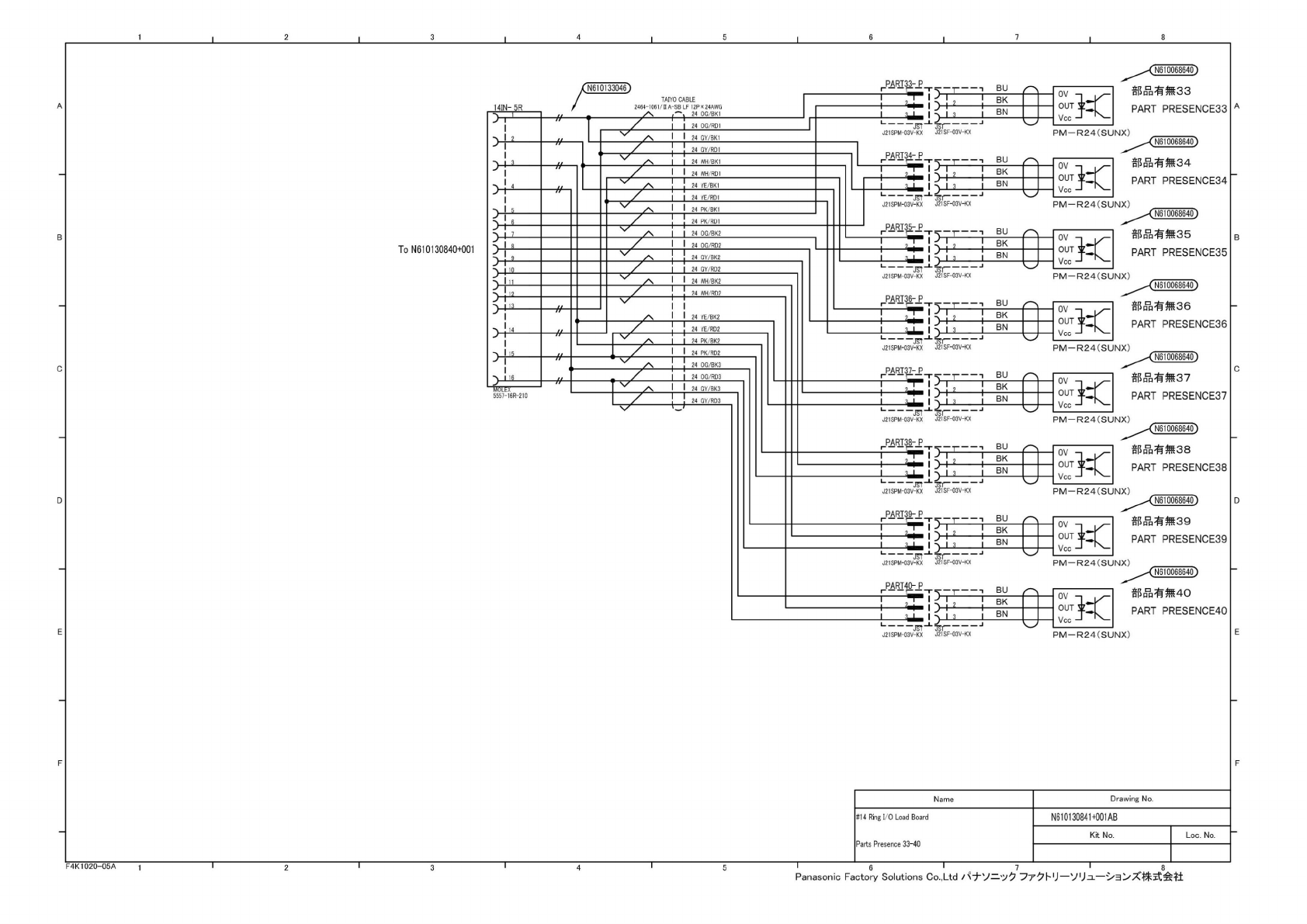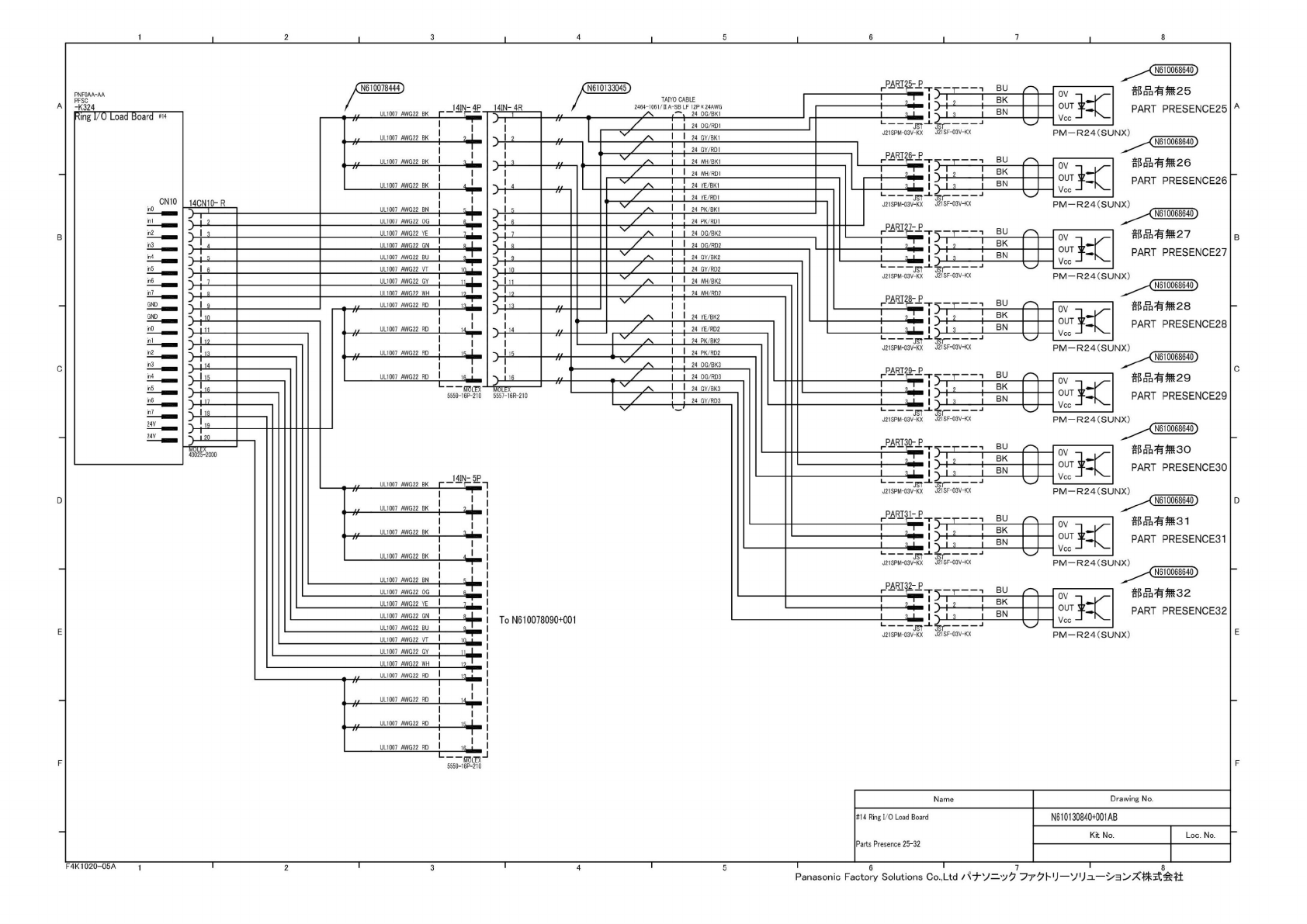 1 2 3 4 7 8 N6 10068640) N6 10078444 N610133045 BU 部 品有瓢 25 BK A A PART PRESENCE25 BN 24 OG/BK1 24 OG/RD1 PM-R24(SUNX) 24 GY/BK1 UL1007 AWG22 BK > N61 0068640) ,, 24 GY/RD1 BU 部品有 ^26 UL1007 AWG22 BK 24 WH BK1 > ov…