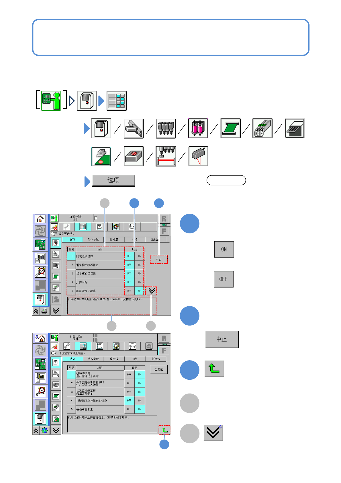 ●初始设定时,请切换OFF的画面和ON的画面来进行设定。