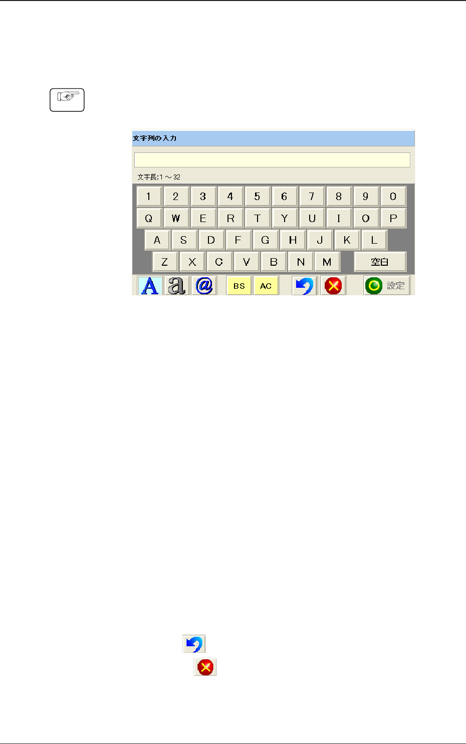 (1) 操作画面で、文字データの入力が必要なボタンを押すと、文字デー