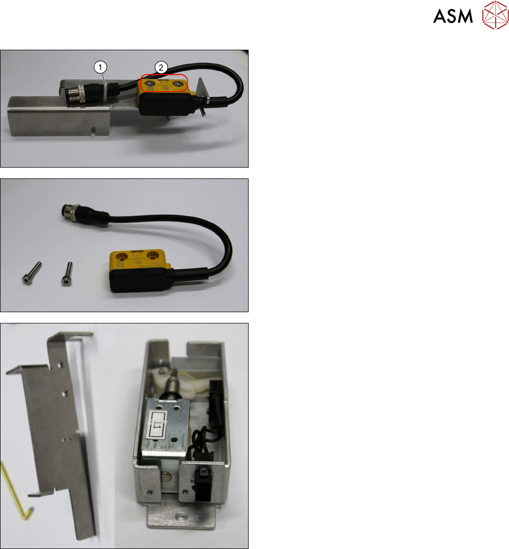 3 Tower Mechanics 3.7 Replacing the Door Insert Lock Service Manual SIPLACE JTF-ML2 08/2017 51 ► Remove the cable tie (1) . ► Remove the two screws ISO 4762 - M 4 x 16- A2-70 [03042507-xx] (2) . ► Remove the Transponder …
