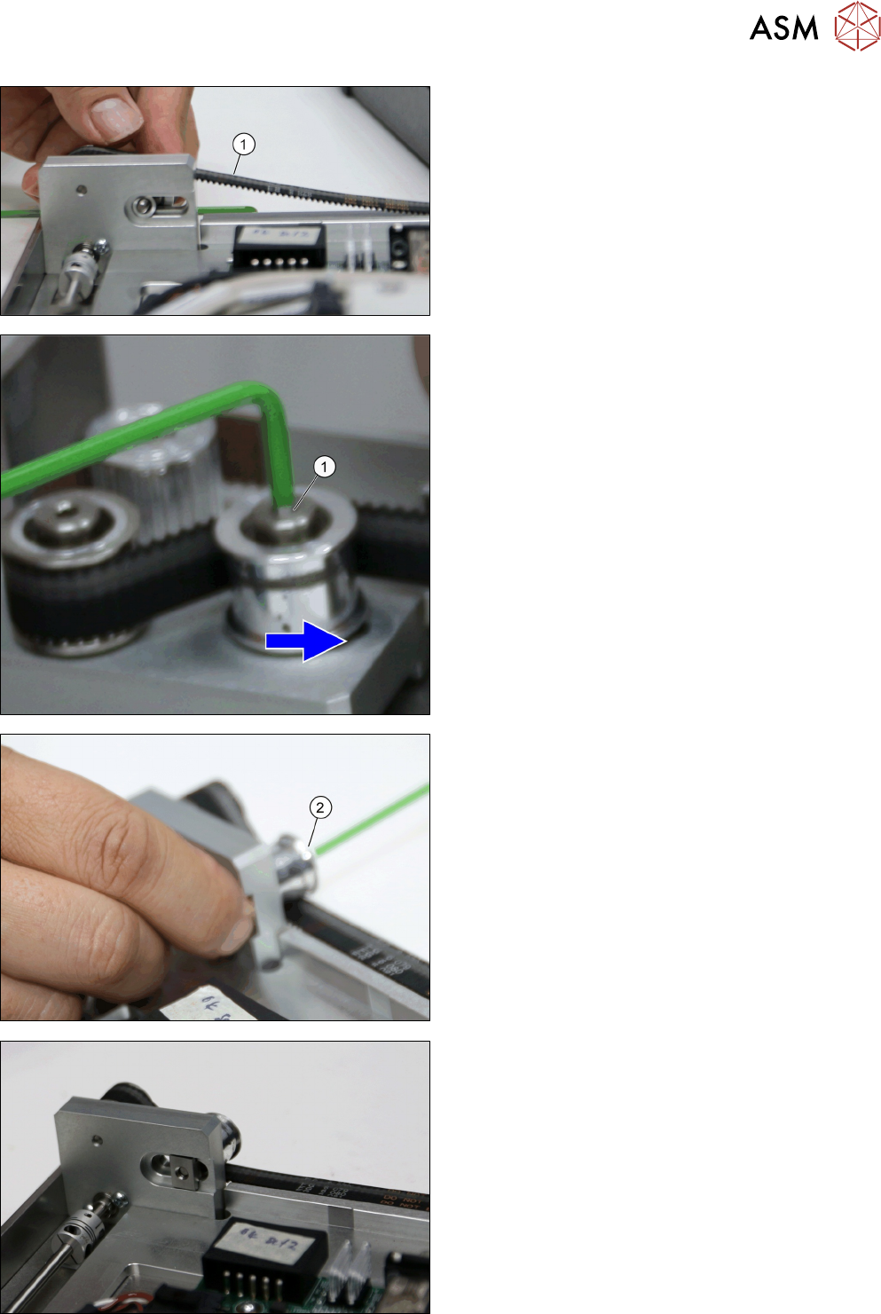 4 Conveyor Mechanics 4.3 Replacing the Conveyor Roller Assembly Service Manual SIPLACE JTF-ML2 08/2017 85 ► Once the roller adjuster is loose the belt (1) can be removed. ► Remove socket head shoulder screw M4x5x16 (1) .…