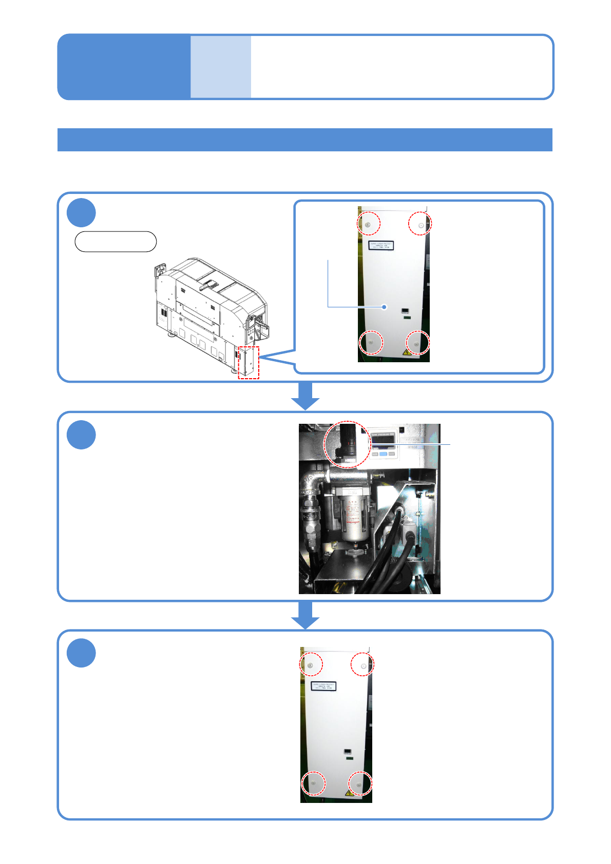 NPM-D3 EJM6DC-MB-04M-05 工作 开始前 后侧 4-1-1 -3 维修保养篇 4-1-1 调整气压 ( 主气压 ) 使用工具 : 六角扳手 (3 mm) 所需时间 :3 分钟 ●主气压在规定值以外时,请调整。 压力表的检查 2 1 拧松螺栓,卸下后侧压力表的保 护盖 2 调整到规定值范围内 主气压用 调节器旋钮 ●调节器旋钮的操作方法 1 : 解锁。 2 : 调整。 3 : 上锁。 3 安装后侧压力表的保护盖 ●螺栓…