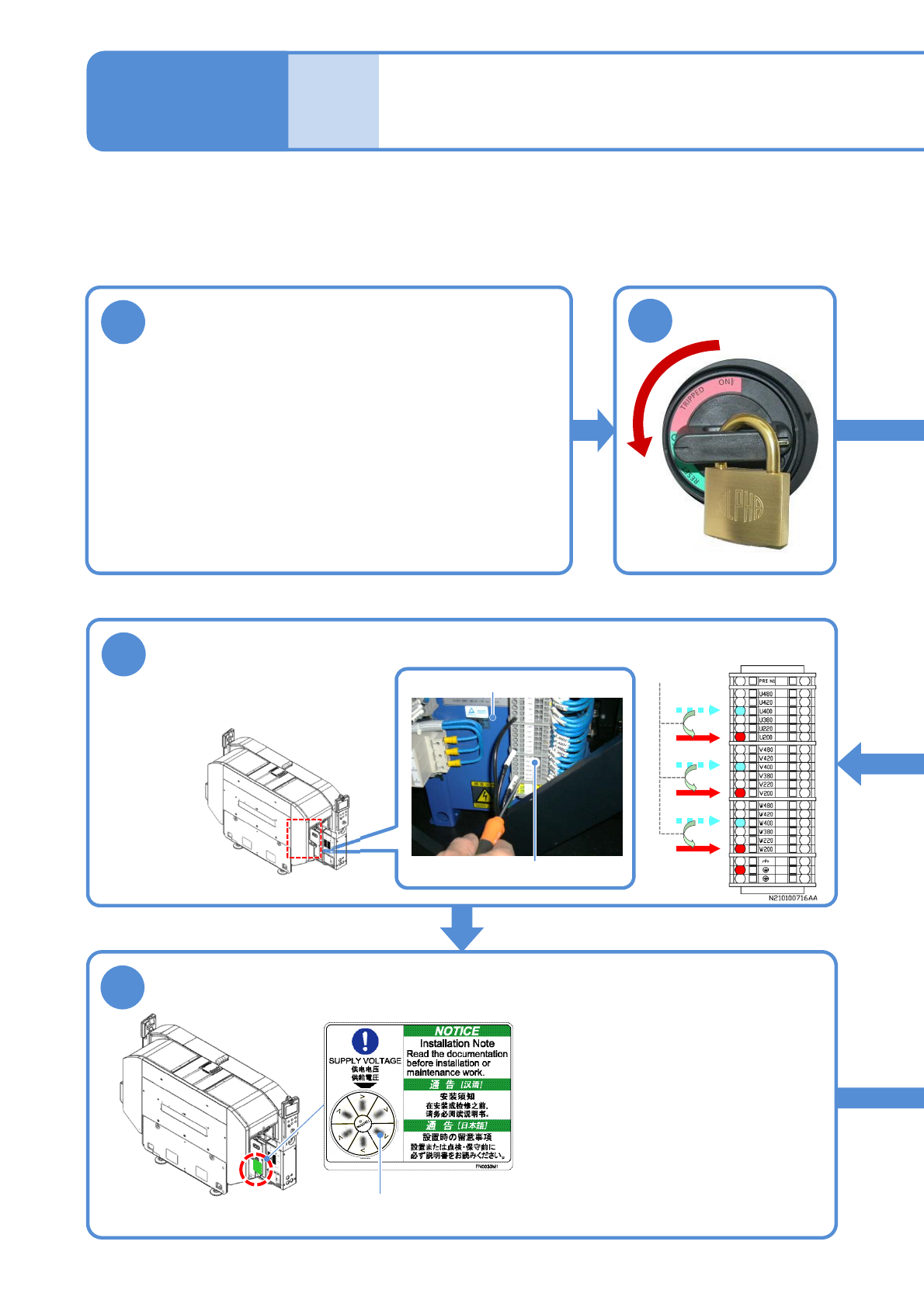 安装安全盖,重新粘贴供电电压表示标牌的数值部分