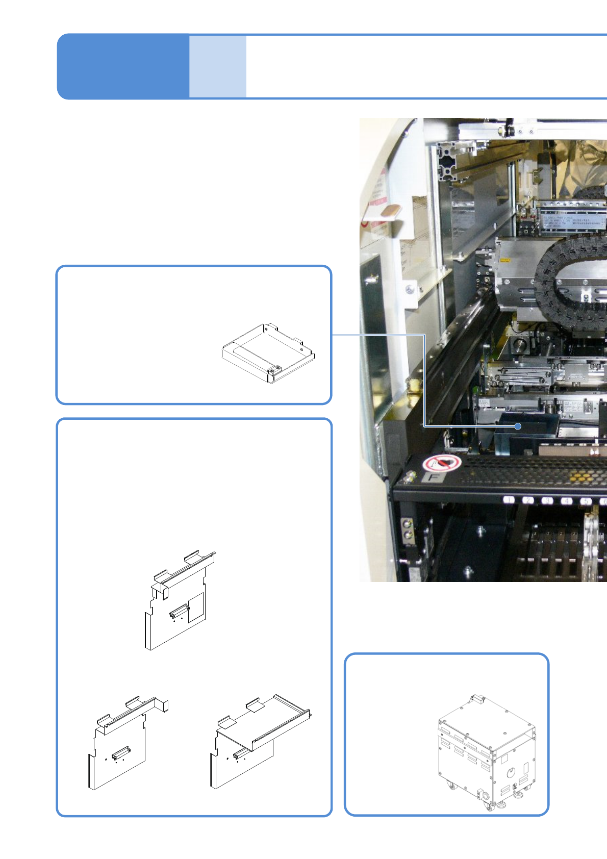 NPM-D3 EJM6DC-SF-01N-0 9 1-9-3 -2 识别元件。 多功能识别照相机 吸嘴交换器单元 收藏或更换吸嘴。 轻量 16/12 吸嘴贴装头用 8 吸嘴贴装头用 2 吸嘴贴装头用 供料器工作台盖 机器启动时,确保机器主体内部 的安全。 X 轴驱动 单元 把吸嘴贴装头 往 X 方向移动。 Y 轴驱动 单元 把吸嘴贴装头 往 Y 方向移动。 贴装头 在元件的供给位置,吸嘴吸着元件, 在基板上贴装元件。 ●有轻量 16/1…