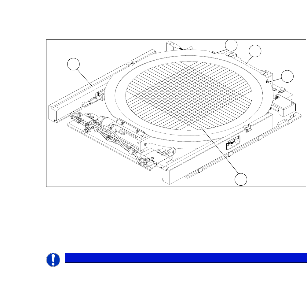 《用户手册》 SIPLACE CA- 系列 3 技术数据 使用软件版本 SC.707.0 或更新 2013 年 10 月版 简 体中文 3.7 SIPLACE 晶圆系统 (SWS) 155 晶圆支撑件 晶圆支撑件被安装在 X-Y 单元上,因此属于晶圆台的一部分 。晶圆被固定在这里完成推送程序。 3 图 . 3.7 - 19 未插入晶圆的晶圆支撑件 (以 12" 为 例) (1) 对 12" 晶圆进行锁定和位置识别的插…