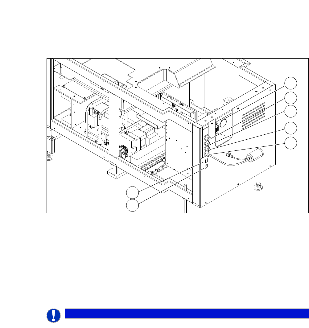《用户手册》 SIPLACE CA- 系列 3 技术数据 使用软件版本 SC.707.0 或更新 2013 年 10 月版 简体中文 3.9 电气和气动连接 181 3.9.3 SWS 上的电气和气动连接 3 图 . 3.9 - 3 SWS 上的电气和气动连接 3 3 3 (1) 测量压缩空气供给的压力计 (2) 电压供应 (3) 与 SIPLACE 贴片机的通讯 (4) CAN 总线 (5) 压缩空气连接 (改装型适配虚拟连接器 [0…