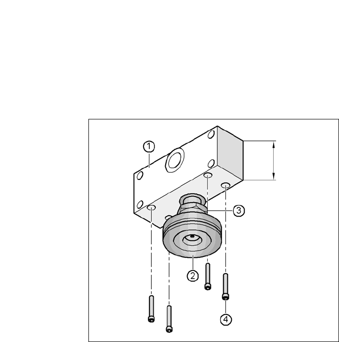 使用四个 M12x80 六角套筒螺丝固定两个垫块 (见图 4.5 - 4 中的物件 4)。 使用尺寸为 10