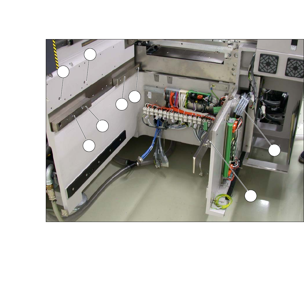 4 设置与调试 《用户手册》 SIPLACE CA- 系列 4.6 安装 SWS 使用软件版本 SC.707.0 或更新 2013 年 10 月 版 简体中文 290 4 图 . 4.6 - 4 在 SIPL ACE 装配位置上 SWS 的螺丝位置图示 您现在可以移开叉车 / 手摇起重机了。 (1) M8 (2) M8 ( 3 )装 配 螺 丝 ( 4 )M 6 (5) M6 (6) M8 用于夹抓 (7) M6 用于角架 (8) …