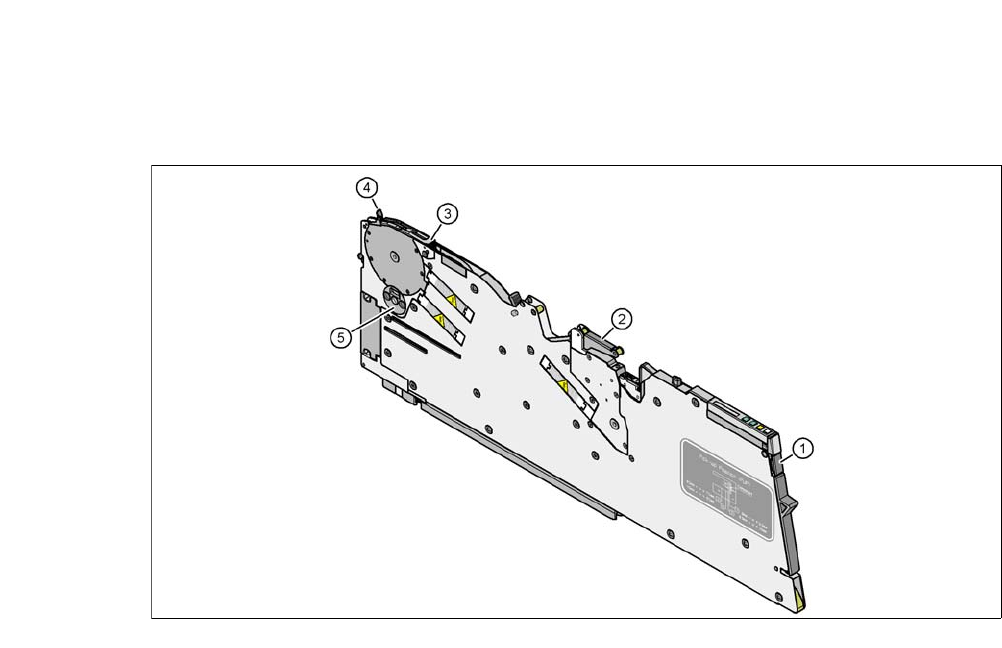 5 设备上的作业 《用户手册》 SIPLACE CA- 系列 5.7 配置供料器模块 使用软件版本 SC.707.0 或 更新 2013 年 10 月版 简体中文 326 如果移除握柄 (物件 1)仍然位于突出 位置,请将其锁定。 5 图 . 5.7 - 2 使 用前检查 X 供料器模块 (1) 移除握柄 (2) 盖箔摇杆 (3) 拾取窗口 (4) 抬升和锁定拾取窗口的控制杆 (5) 元件弃置舱