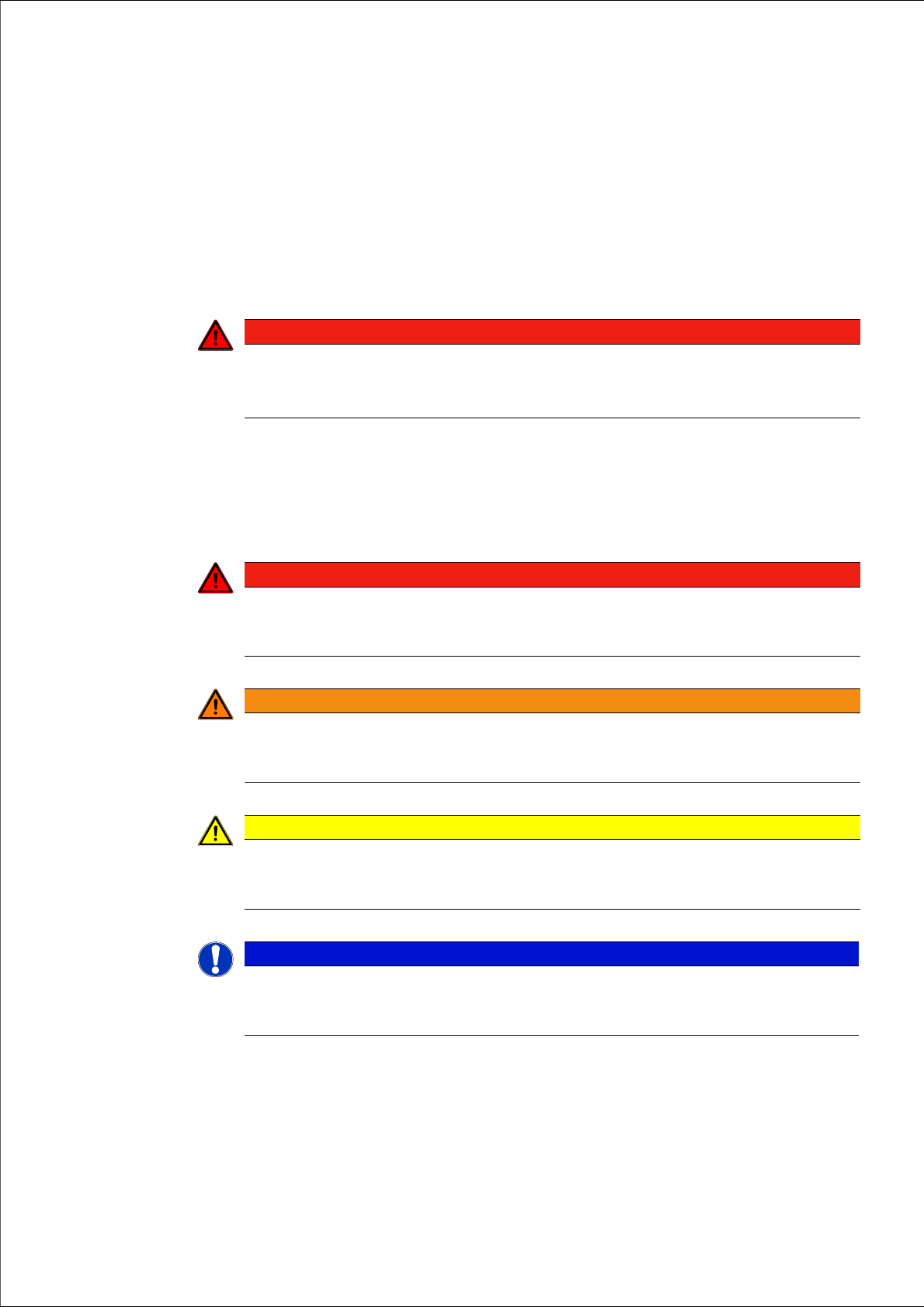 这些注意事项已用警示三角形做了突出显示,根据危险程度不同显示如下: