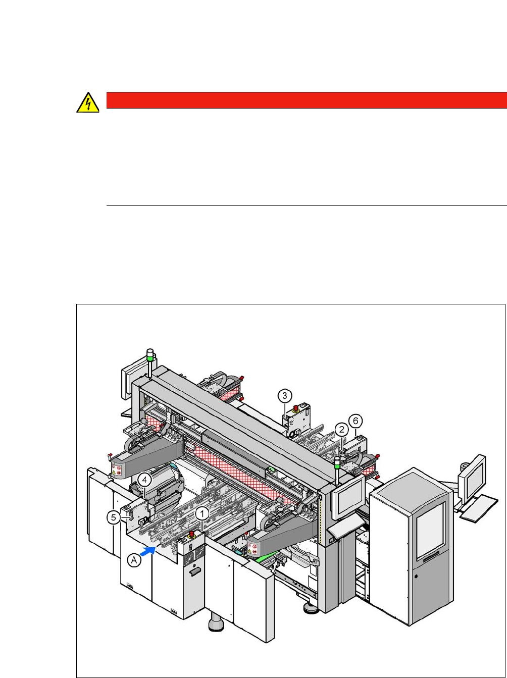《用户手册》 SIPLACE CA- 系列 2 操作安全 使用软件版本 SC.707.0 或更新 2013 年 10 月版 简体中文 2.8 安全功能 81 主电源开关位于 OFF (关)位置 2 2 主开关位于 ON (开)位置 2 在使用主开关进行启动之后,SWS 计算机将开机。 2.8.2.4 贴片机上的保护开关位置 2 T:图 10.0 - 1 贴片机上的保护开关位置 危险 致命电压! 对贴片机处理不当就有可能导致 死亡、严重的…
