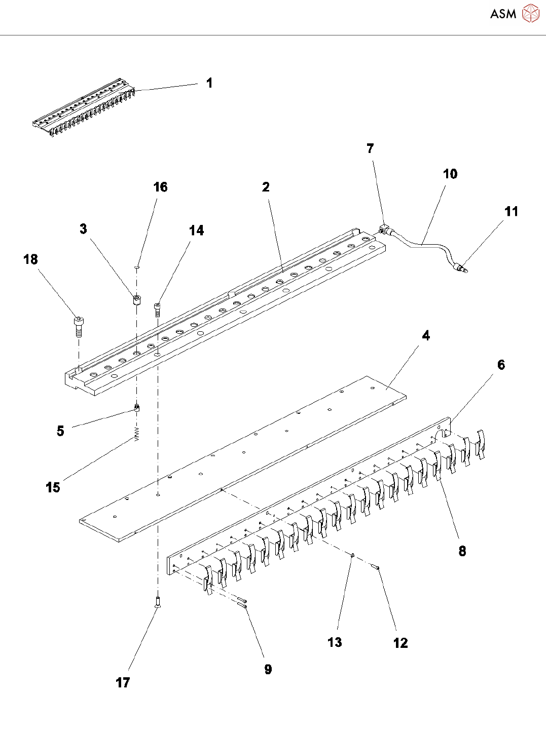 Manifold long Page 3 / 3 19.11.2021 Pos. Item no. Description Part marking 1 00321140-01 MANIFOLD LONG 2 00321129-01 DISTRIBUTOR STRIP LONG 3 00320910-01 SEAL BUSH 4 00321141-01 SUPPORT PLATE LONG 5 00320912-01 SEALING P…
