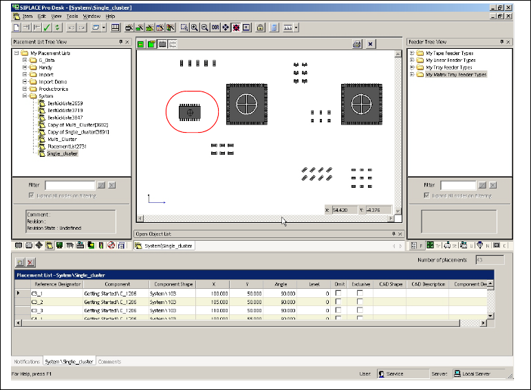 Open the placement list Getting Started\Single_Cluster and use the drag & drop function to