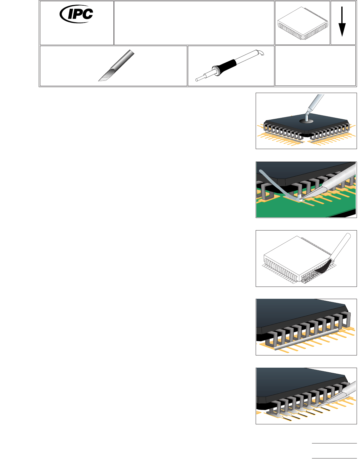 EQUIPMENT REQUIRED Soldering system Flat blade surface mount installation tip Vacuum pick-up tool Damp sponge OPTIONAL EQUIPMENT Tweezers MATERIALS Flux-cored solder (0.7 mm suggested) Flux Cleaner PROCEDURE 1. Install s…