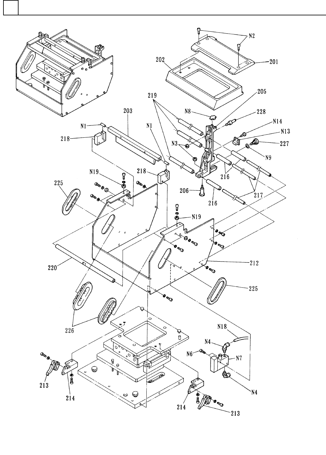 イラスト No. REF No. PART No. PART NAME REMAR KS Q'TY 15 C-4転写ユ ニット部 C-4 TRANSFE R UNIT SECT. 部 品 名 品 番 個数 備 考 201 1 104592120101 PLATE フ ゚レート 202 1 104592120201 BLOCK ブロック 203 1 1045921203 BLADE ブレイド 205 1 104880800…