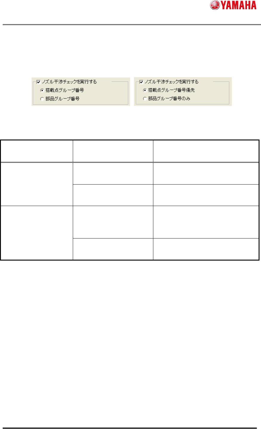 ラジオボタンの項目名 ノズル干渉チェックの動作