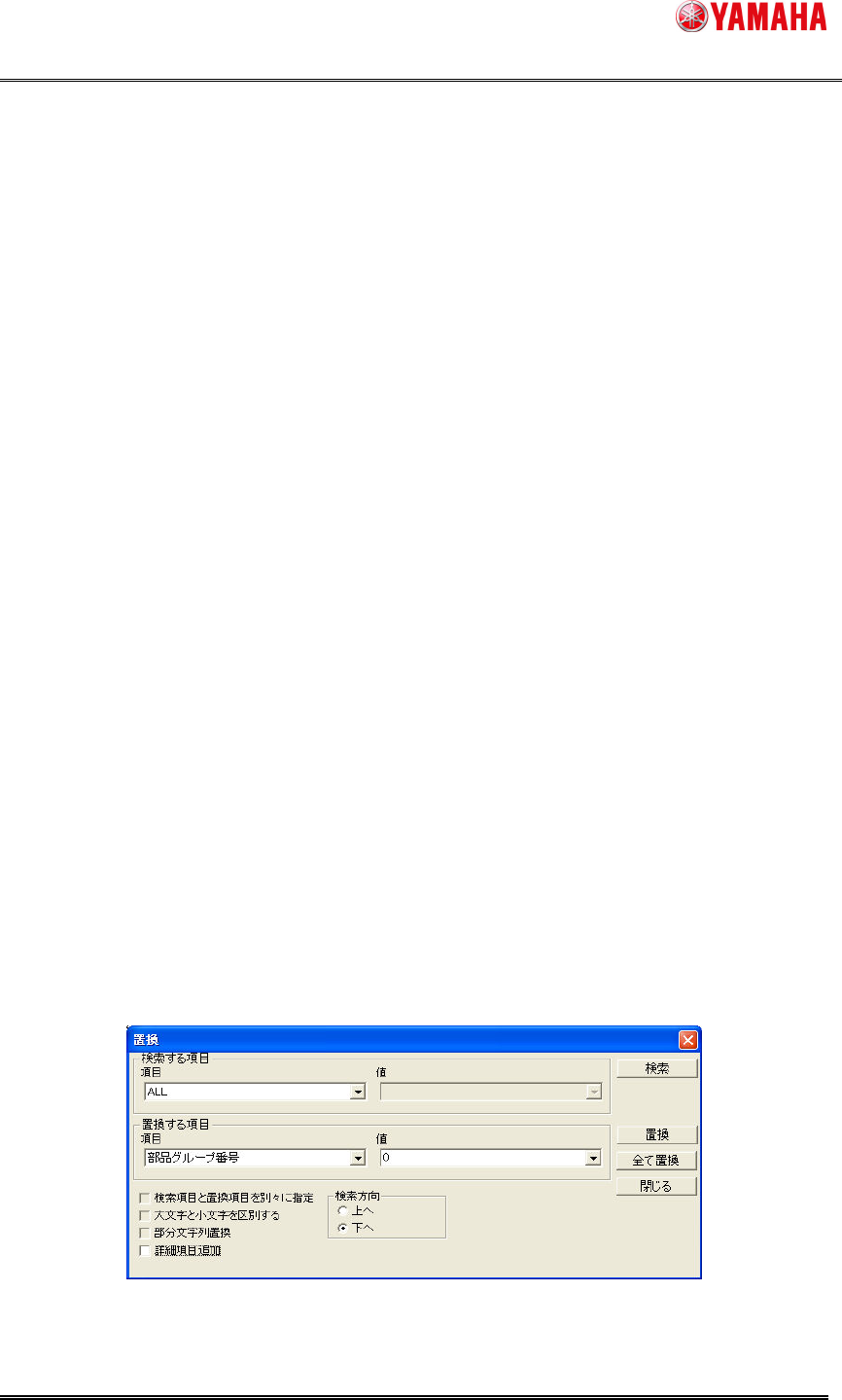 3. [検索する項目]-[項目] を 「ALL」、[置換する項目]–[項目] を [部品グループ番号]、[置換