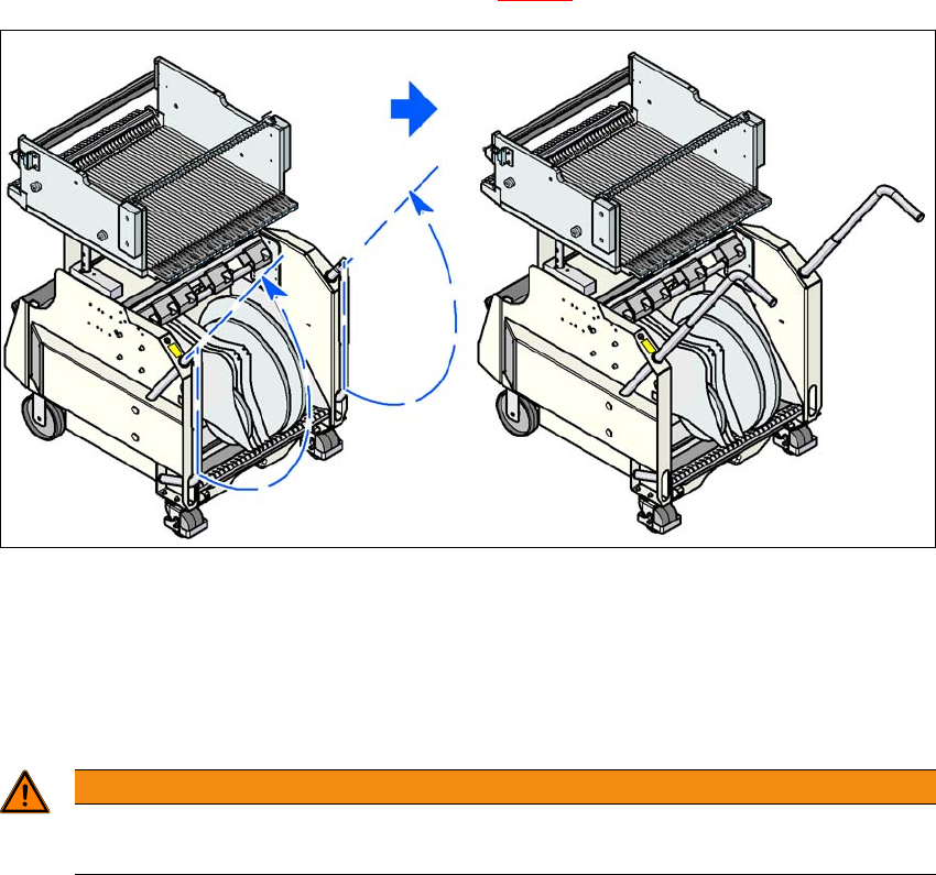 Võttes mõlema käega käepidemetest, tõmmake komponendikäru masina juurest eemale.