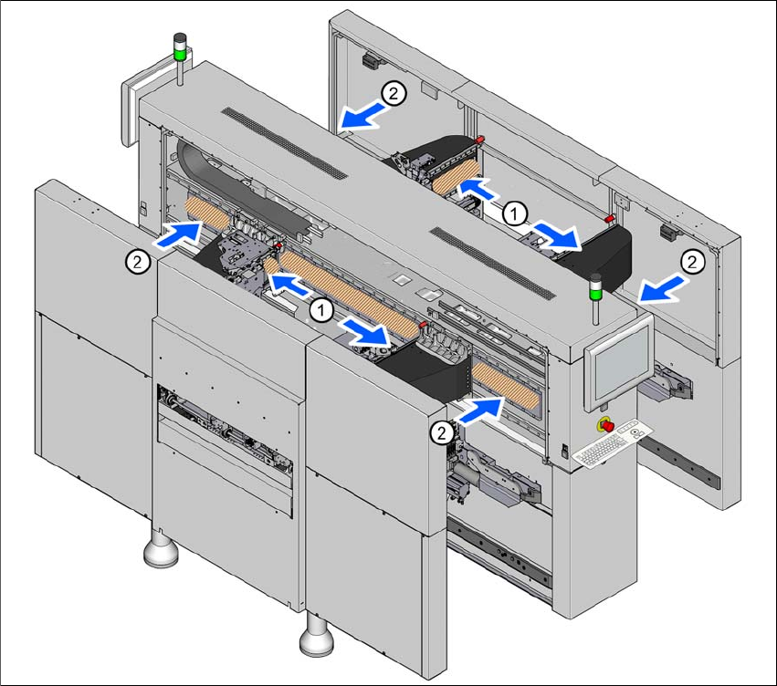 Jn 2.1 - 1 Püsimagnetite asukohad lineaarajamitel (näitel kujutatud SIPLACE X4i S)