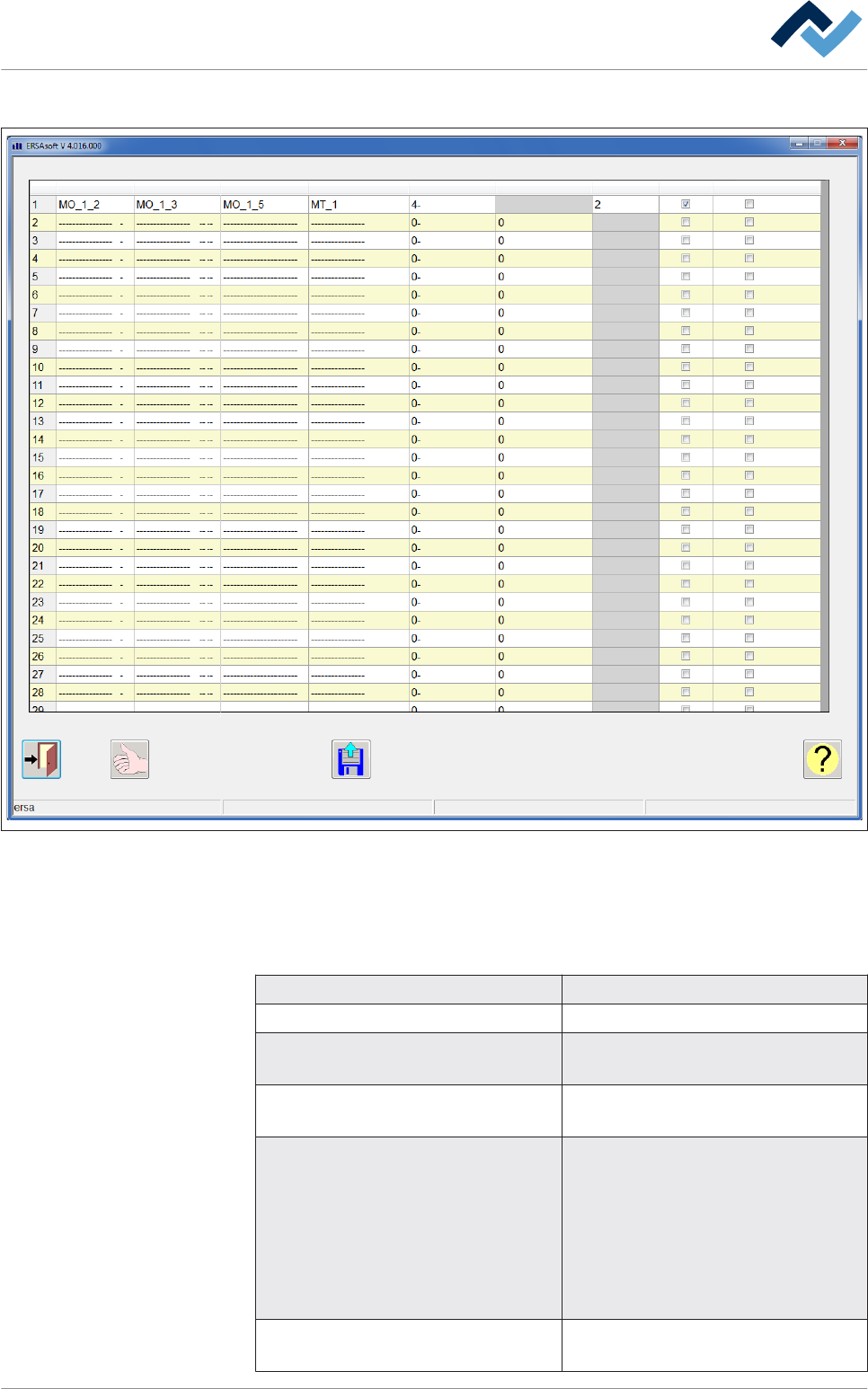 ð Se abre la ventana de diálogo de las configuraciones [Cyclic messages]: Cyclic messages Settings Facility 1 ID Facility 2 Facility 3 Text Interval Time 1 Number Active Infeed stopper Maintenance mode Abb. 41: Ventana d…