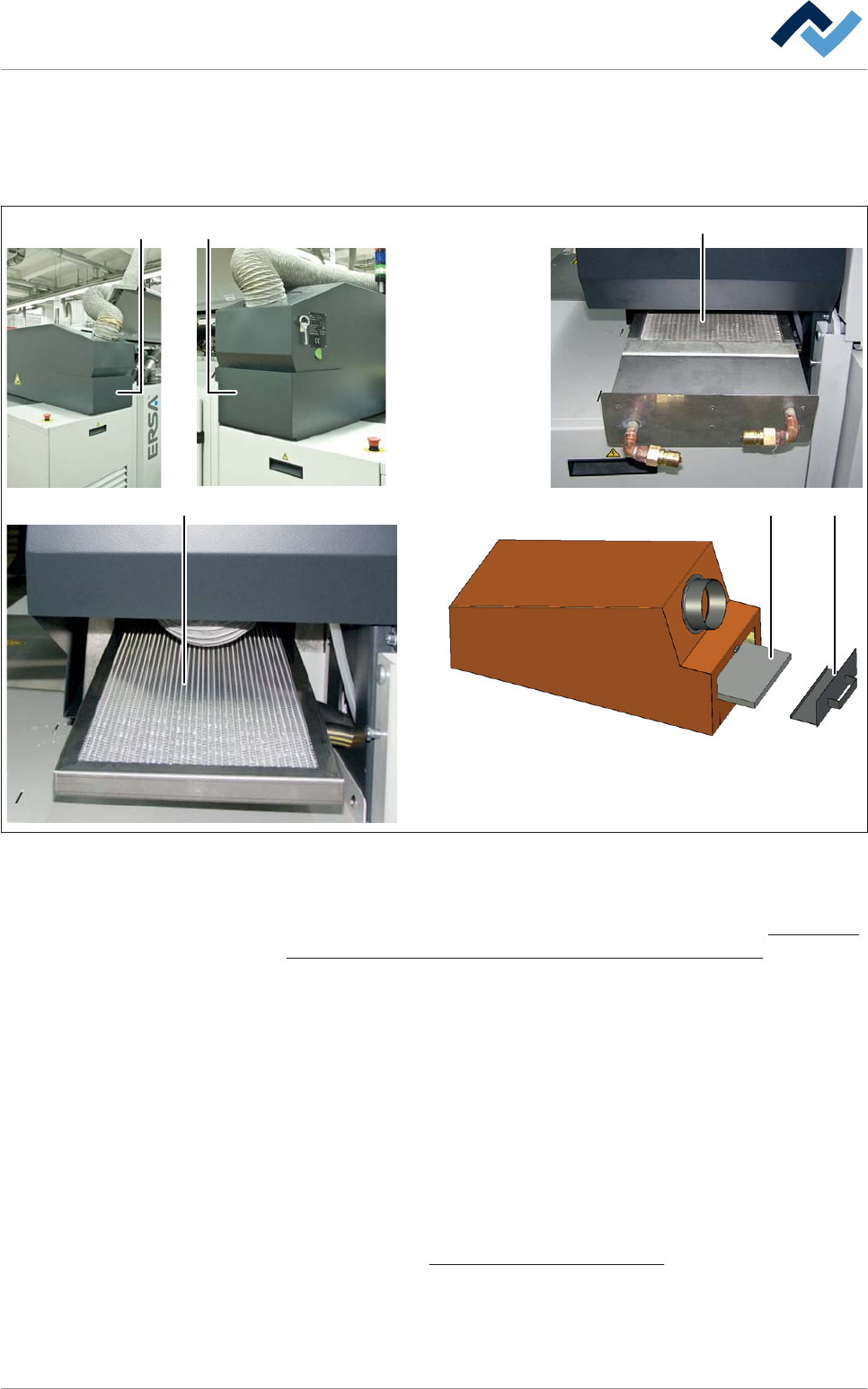 Segundo circuito de agua: Limpieza de filtros Los filtros de aluminio se encuentran en el conducto de extracción en la entrada y la salida de la máquina. Son accesibles retirando las cubiertas (2) y desmontando el interc…