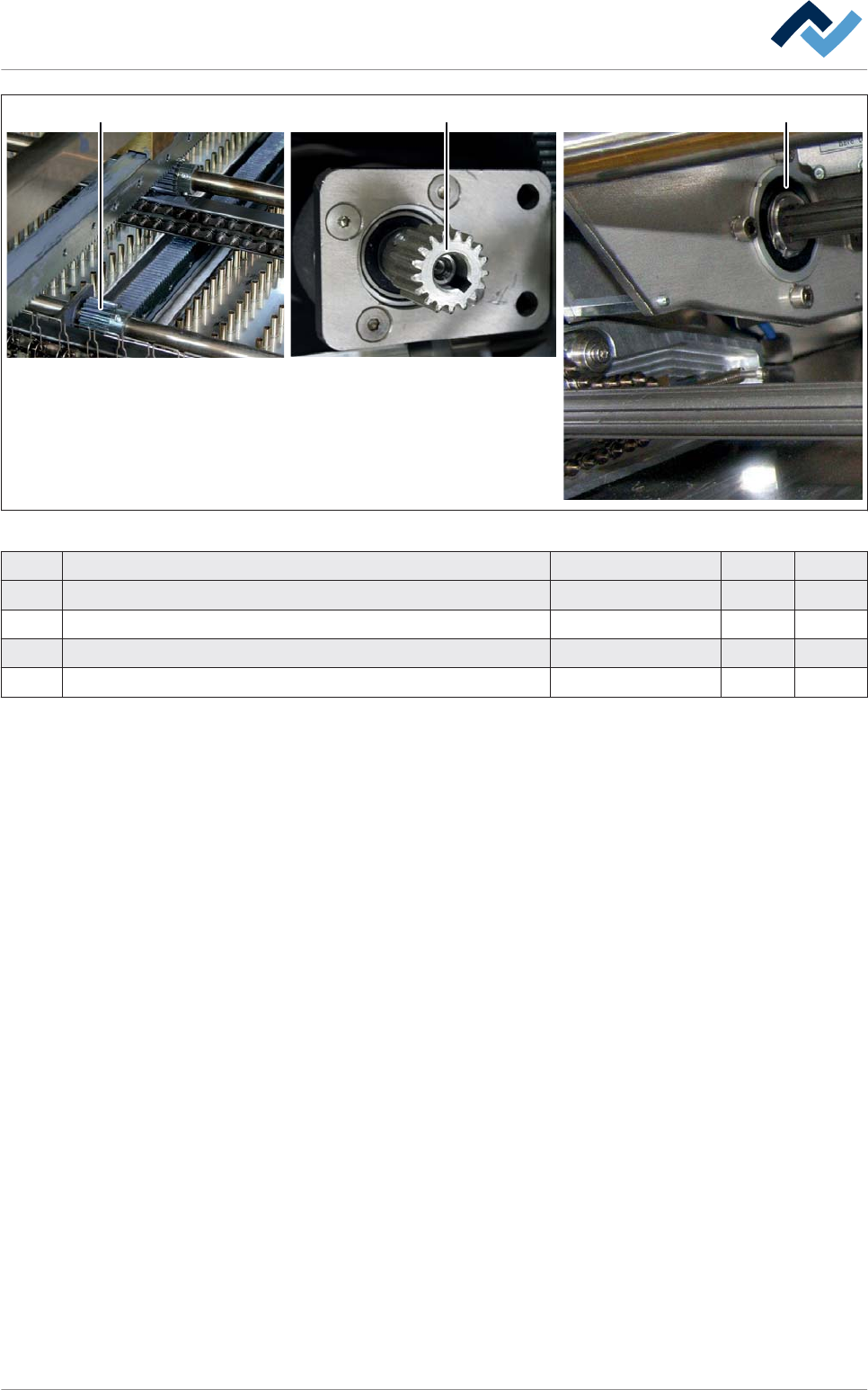 1 2 3/4 Abb. 234: Ruedas dentadas, Ubicación Pos Denominación Número de artículo A B 1 Rueda dentada 17337 x 2 Rueda dentada 20490 x 3 Rodamiento ranurado de bolas diámetro interior 25 mm 6LA60052RS x 4 Rodamiento ranura…