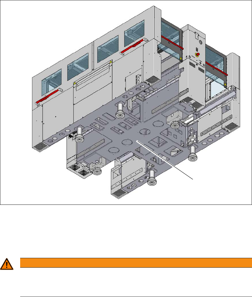 在贴片机底部进行装配作业时存在发生人身伤害的危险!