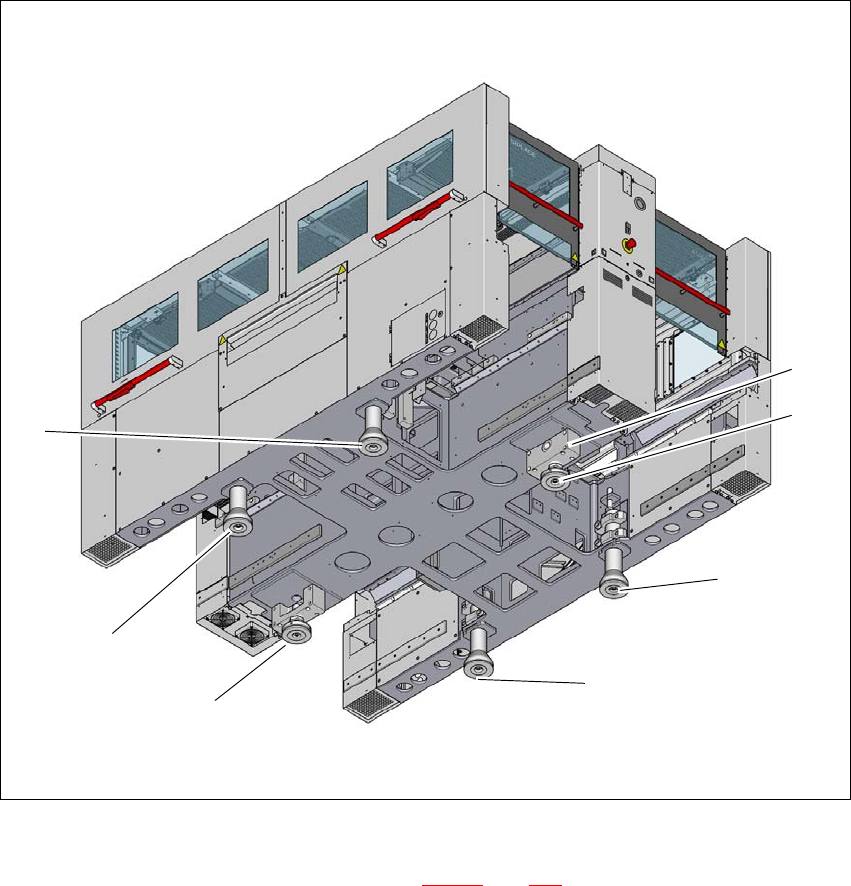 设备中部支脚已被预设。垫块必须在贴片机下面的正确位置处。具体情况因贴片机的高度而异。