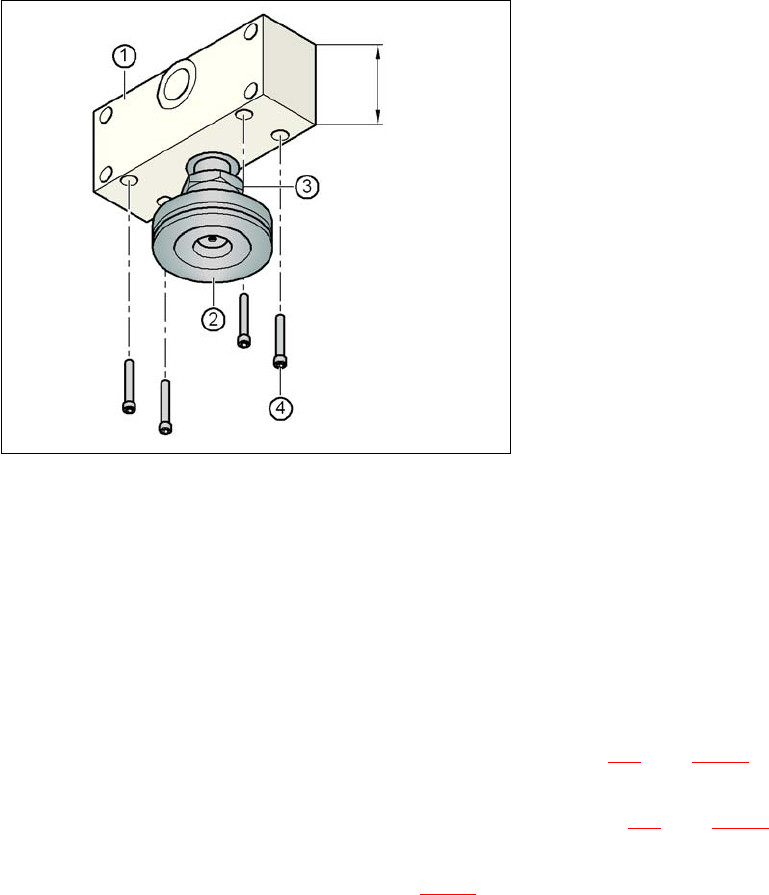 使用四个 M12x80 六角套筒螺丝固定两个垫块 (见图 3.0 - 1 中的部件 4)。使用尺寸为 10