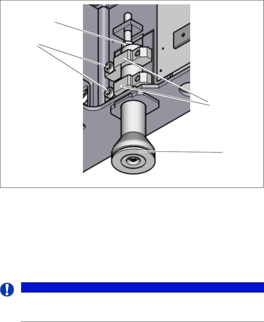 4 设置与调试 使用说明书 SIPLACE CA4 V2 4.3 设置贴片机 使用软件版本 711.0 或更新 2019 年 2 月版 160 4 图 4.3 - 8 在 X 和 Y 轴方向调整贴片机 使用 SW36 叉形扳手调整 M24x2x120 设置螺丝 (第 161 页图 4.3 - 9 中的部件 1) 以便使在 所要求的传送导轨高度上,贴片机 水平仪中的液体不偏离其零点位置。
