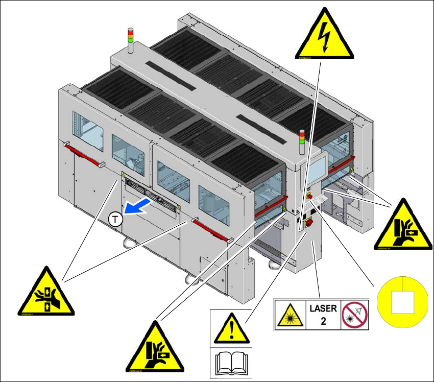 图 2.2 - 1 贴片机上的警告标志 - 第 1 部分