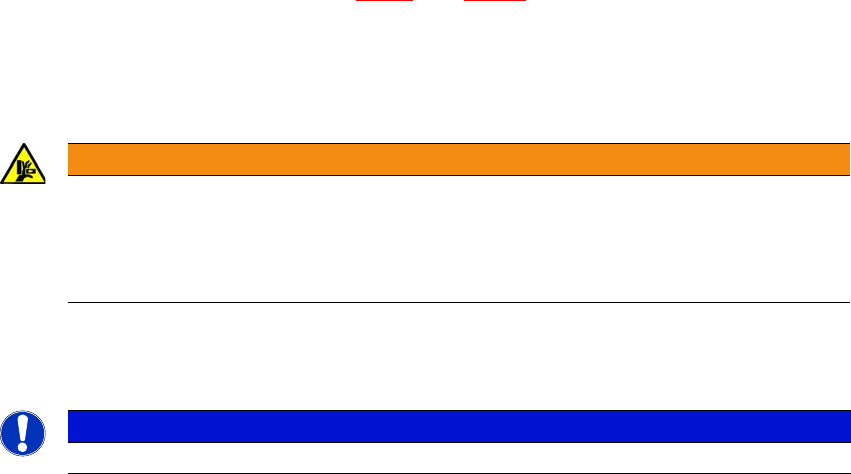 废料带容器必须从元件料车中拉出和清空。这样做时存在拇指被夹住的危险。为了防止发生这种