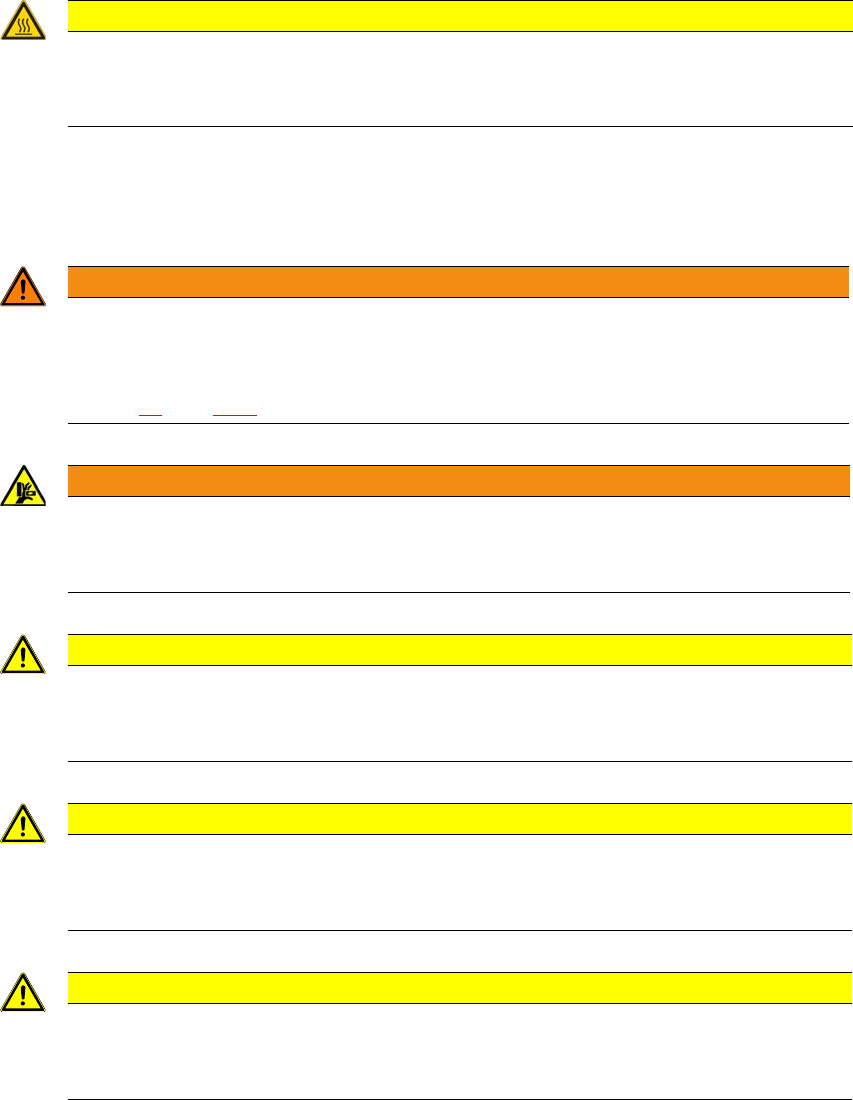 使用说明书 SIPLACE CA4 V2 2 操作安全 使用软件版本 711.0 或更新 2019 年 2 月版 2.5 操作贴片机时的安全须知 59 2.5.7 使用吸嘴交换器时的安全须知 遵守下列说明以避免贴片头和吸 嘴交换器之间发生碰撞。 2 2 2.5.8 持续工作时 X 供料器模块上的高温 2 图 2.5 - 3 持续工作时 X 供料器模块上的高温 (1) 温度标志,部件号:030 31926-01 (2) 步进马达 警告 混…