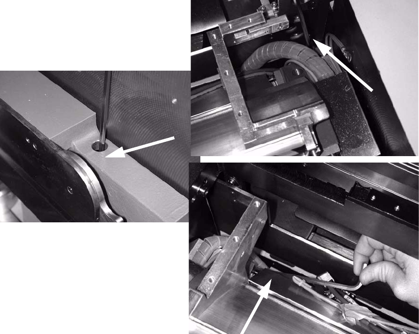 : Pull the cables that run in the cable duct below the empty tape cutter out of the machine frame.
