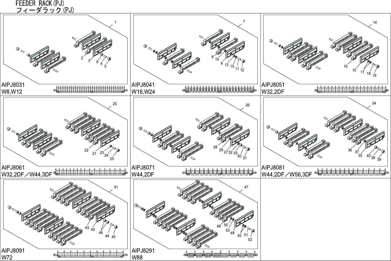 FEEDER RACK(PJ) フィーダラック(PJ) 番号 図番 & コード番号 個数 品名 規格 材質 備考 No. Drg.No. & Code No. QTY Description Rating Materials Remarks 1 AIPJ8031 1 PLATE, PARTITION プレート 仕切り OT 2 IPJ8101 33 PLATE, PARTITION プレート 仕切り PL 3 IPJ8…