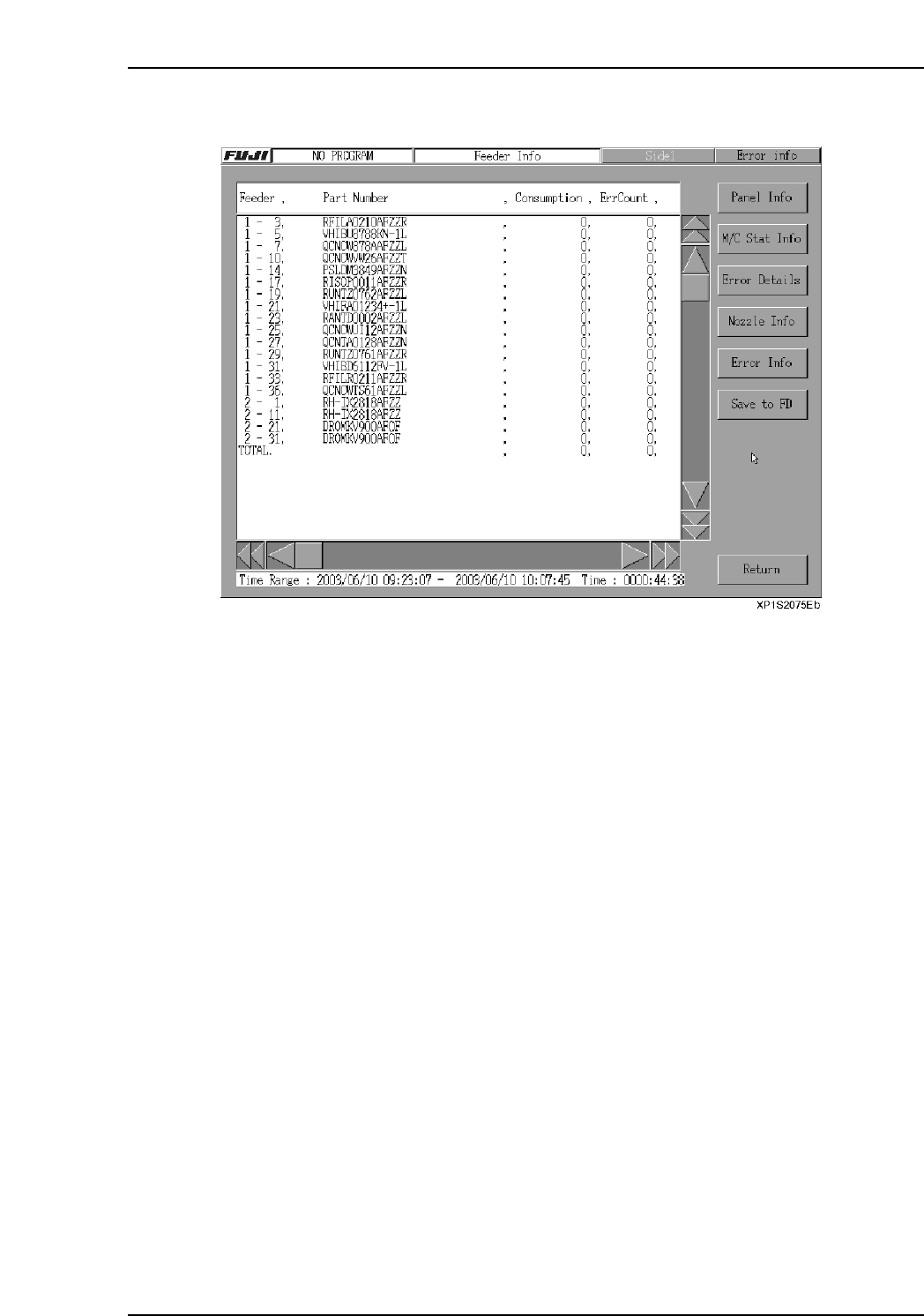 Displays the "quantity used" (number of parts used) at the feeders which are in the log