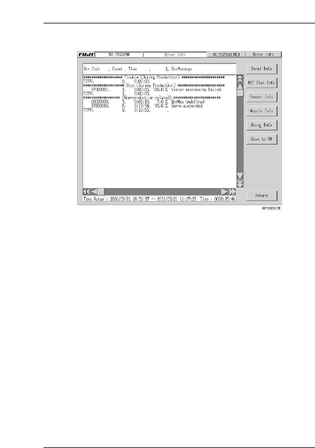 6.2.8 Error Information Screen Data Explanation The error count and error time are acquired from the event's "pT". However, less than 6 minutes is processed as a "stop", and 6 minutes or longer i…