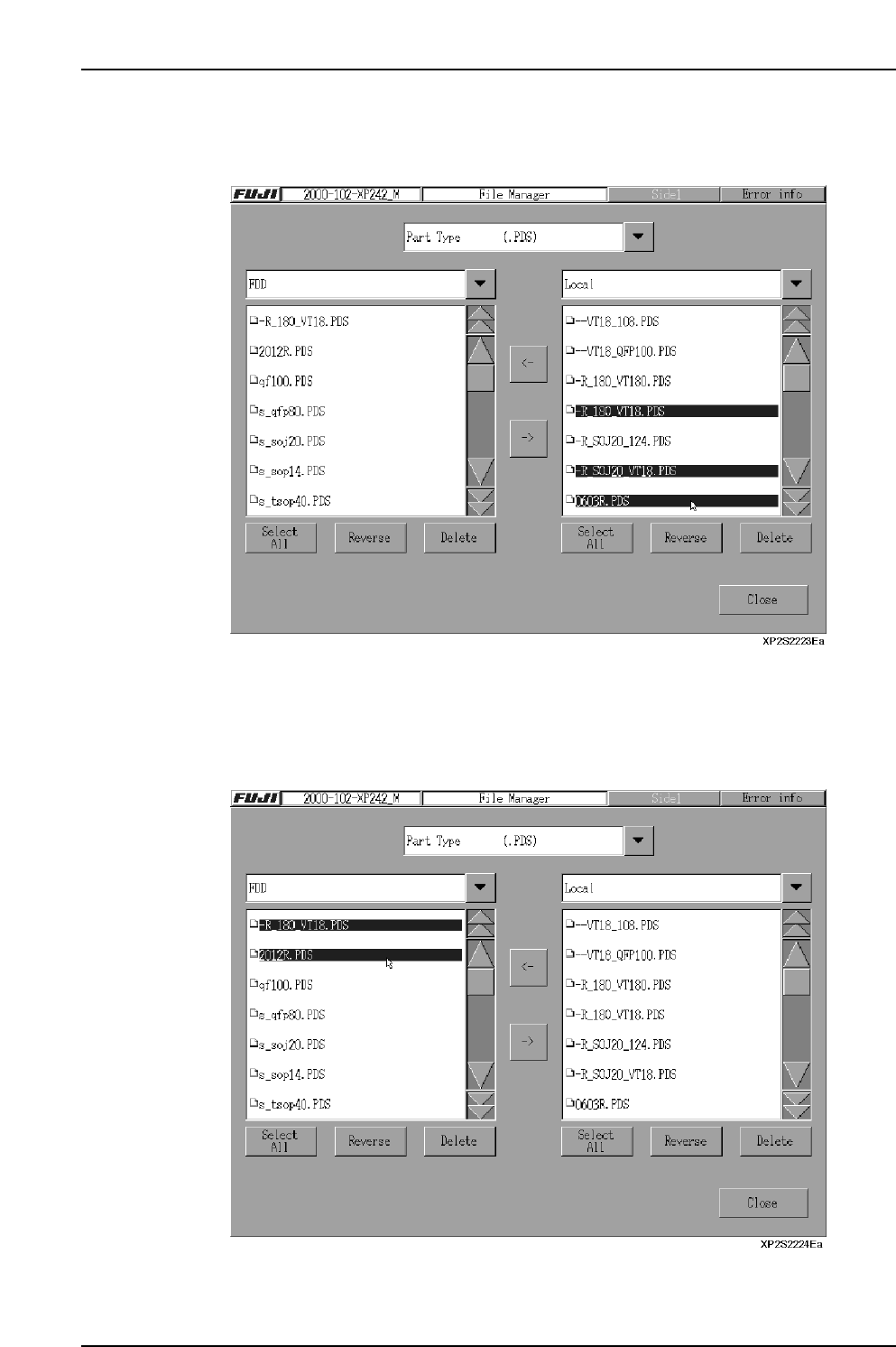 Click these buttons to copy files in the direction of the arrow.